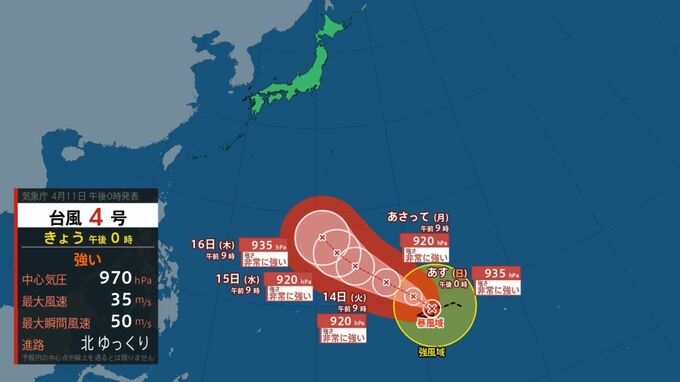 気象庁によりますと、きのう(10日)午前3時に「台風4号(シンラコウ)」が発生したということです。