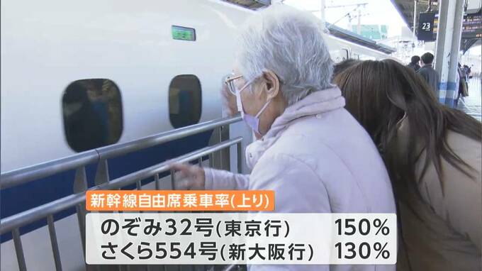 自由席乗車率も午後3時ごろに岡山を出発した東京行きのぞみ32号では150%になるなど多くの列車で混雑しています。