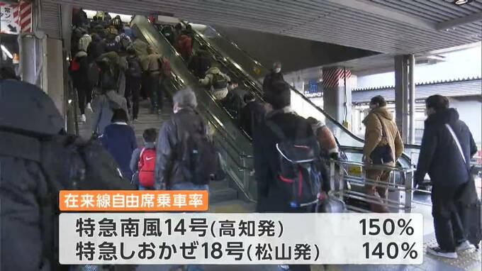 また、四国方面からの在来線では高知発の特急南風14号で自由席乗車率が150%となりました。