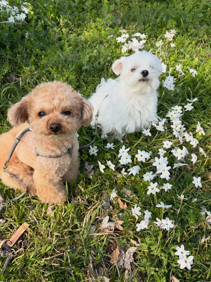 そして「見上げるくまちゃんたちのシジミ目がたまんないねw」「2匹のシジミ目コレクションどうぞ」と、愛犬2匹の画像を紹介しています。