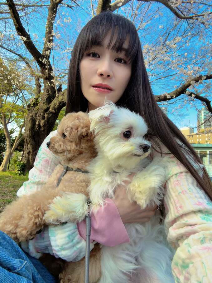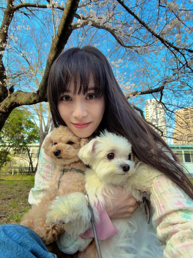 あ~ちゃんは、桜をバックに愛犬2匹を抱えた笑顔の画像を添えて「部屋中一生断捨離してたら 春になりました」「春服も春ご飯も楽しくていっぱい運動してまーーす」と投稿。