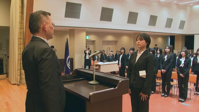 「この3年間、諸先生方のご指導を承り、社会に貢献できる立派な歯科衛生士を目指し一生懸命努力することを誓います」