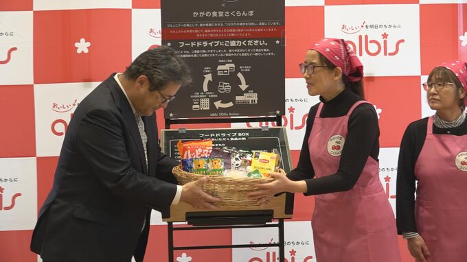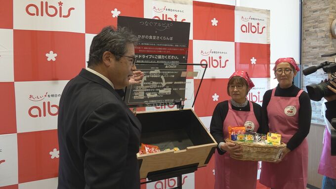 スタートとなった11日は、この地域で食糧支援の活動を続ける「かがの食堂 さくらんぼ」に最初の食品が手渡されました。