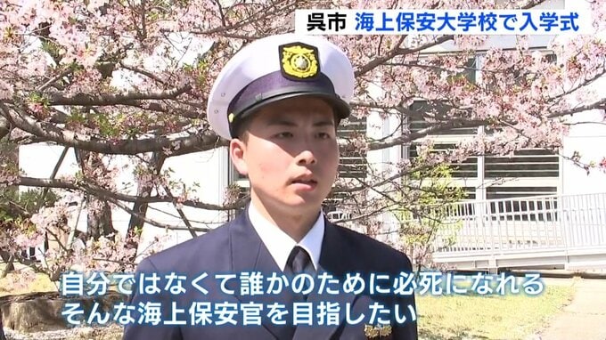 桜が舞う中、入学式が行われたのは広島県呉市にある海上保安大学校です。