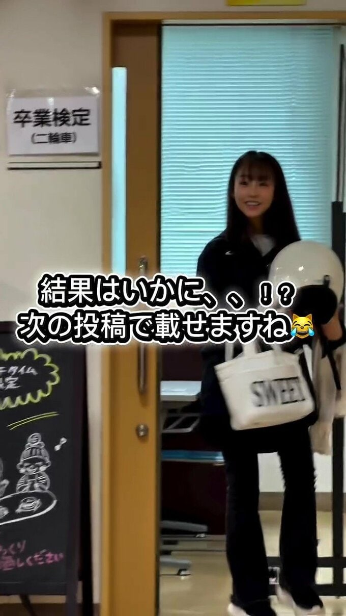 そして前日の投稿では「卒業検定、、絶対落ちたと思ってた...!!!! 無事、ギリ合格しました〜」と、検定に合格したことを報告。
