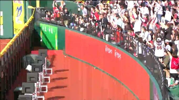 早川投手の好投に応えたい楽天は5回、ランナー1,2塁で打席立ったYG安田選手が、2026年に新設された外野フェンスの超える、楽天として初となるホームランゾーンへの一発で3点を追加。