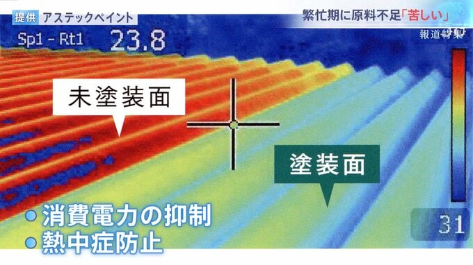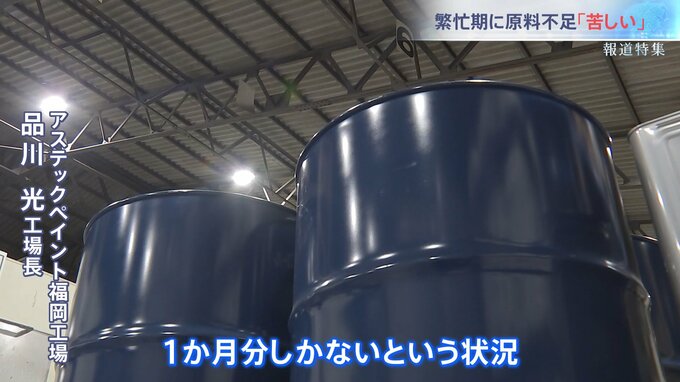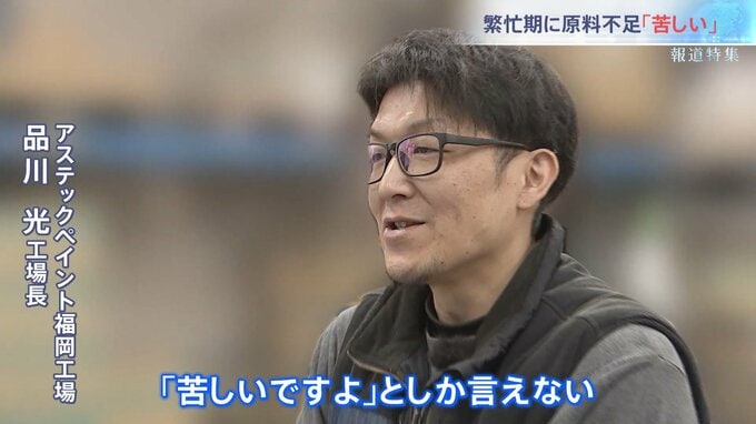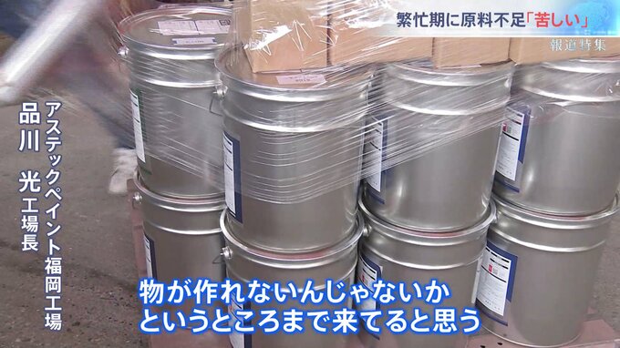 「いろんなものを混ぜ合わせて、初めて塗料ができる。その一部(の原料)が入らなければ、この塗料もそもそも作れない状況になる。今繁忙期中で、4〜5月の涼しいシーズンは、一番塗料が塗りやすい時期。『苦しいですよ』としか言えない」