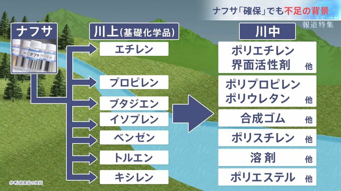 ナフサを分解すると、およそ一定の割合でさまざまな基礎化学品が「同時に」生まれる。不足するものだけをピンポイントで作ることが難しい。