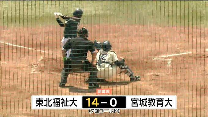 開幕戦となった福祉大対宮教大の試合は、福祉大が先頭打者ホームランなど1回から攻撃力を発揮、17本のヒットを放ち、14得点でコールド勝ちを収めました。