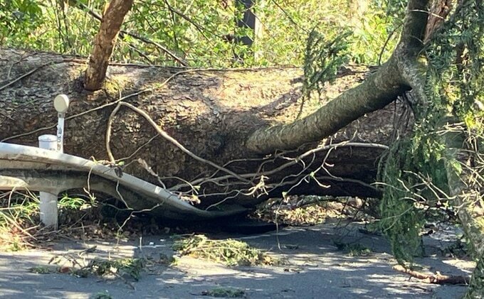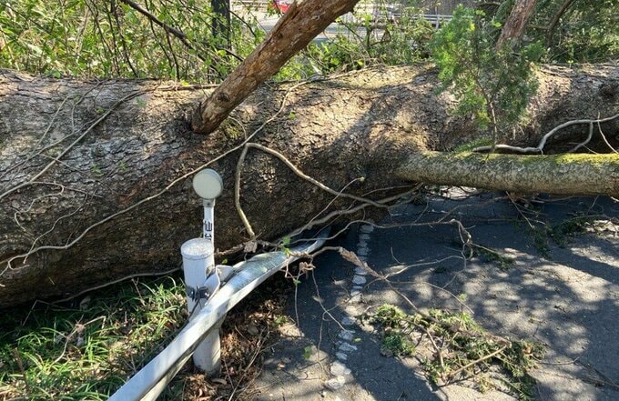 警察が、通行する車に迂回するよう案内していました。このあと、業者を呼んで倒れた木を撤去するということです。