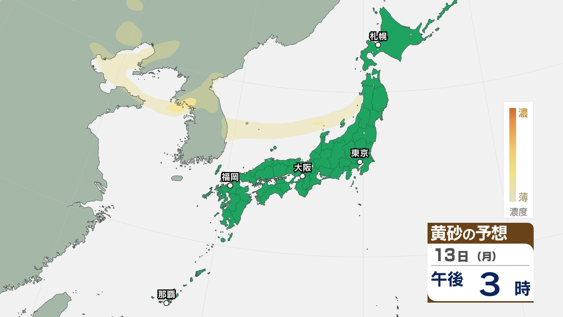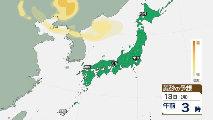 【黄砂情報】きょう12日(日)も「日本列島」に飛来か…関東・近畿・中国・北陸など広い範囲で影響の可能性 12日(日)~15日(水)黄砂シミュレーション【気象庁 12日現在】 RSK山陽放送 2026年4月12日(日) 09:43 国内 天気 13日(月) ▶12日(日)~15日(水)黄砂シミュレーション画像 ▶12日(日)~15日(水)黄砂シミュレーション画像