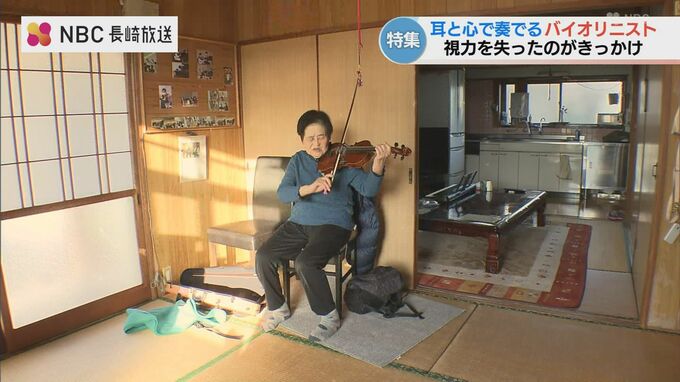 「私が見えていたらバイオリンは弾いていなかったかもしれません。見えなくて、音にもすごく敏感になって…、だからバイオリンが入ってきたのかもしれないね。見えなくなってよかったとよ、かえって。こがんことができるようになった、人生が広がった」