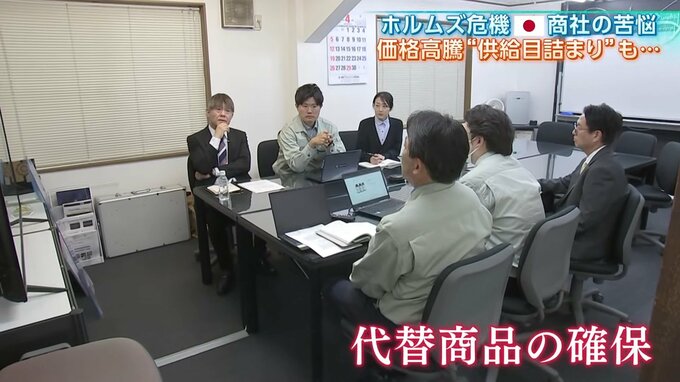 同じく石油由来の接着剤は、3月後半から入手困難になっているといいます。社内会議では、代替商品の確保が議題に。