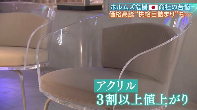 たとえばこちらの椅子。原料のアクリルの仕入れ値が3割以上値上がりしただけでなく...