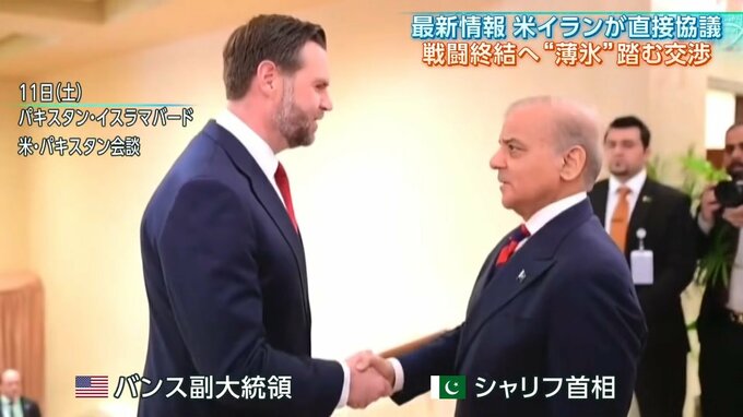 4月11日、パキスタンの首都イスラマバードに到着したアメリカのバンス副大統領。まず、パキスタンのシャリフ首相と会談し、その後、イランとの協議に臨みました。