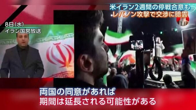 「イランは(停戦の)2週間を交渉に充てる。両国の同意があれば期間は延長される可能性がある」