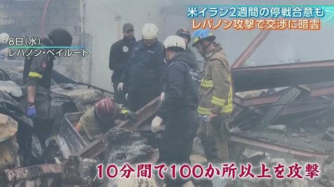 しかし、一時停戦発表の直後、イスラエル軍がレバノンに対し、過去最大規模の空爆を実施しました。わずか10分間で100か所以上を攻撃しました。