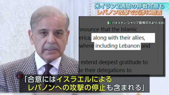 停戦交渉の仲介に当たったパキスタンのシャリフ首相は、「合意にはイスラエルによるレバノンへの攻撃の停止も含まれる」としていましたが、イスラエルのネタニヤフ首相は...