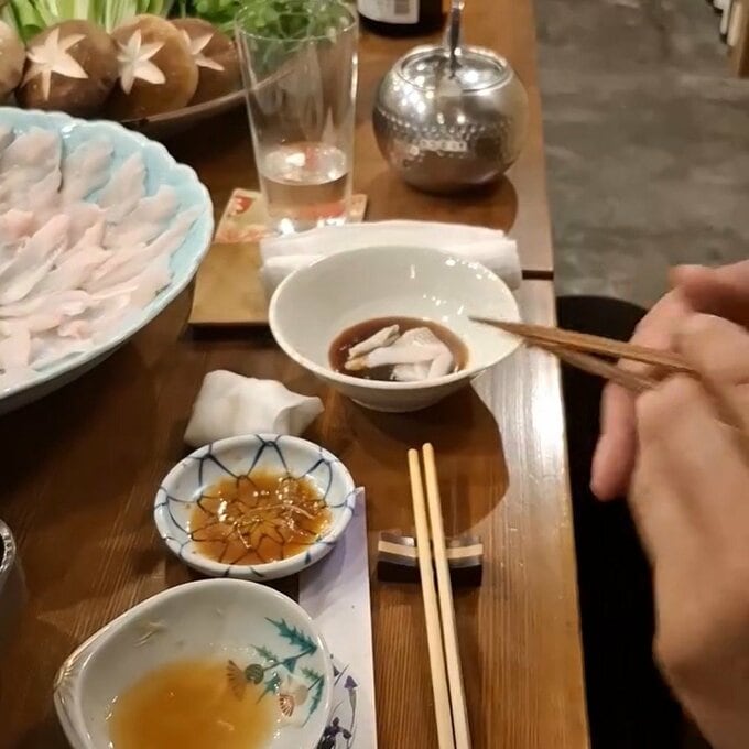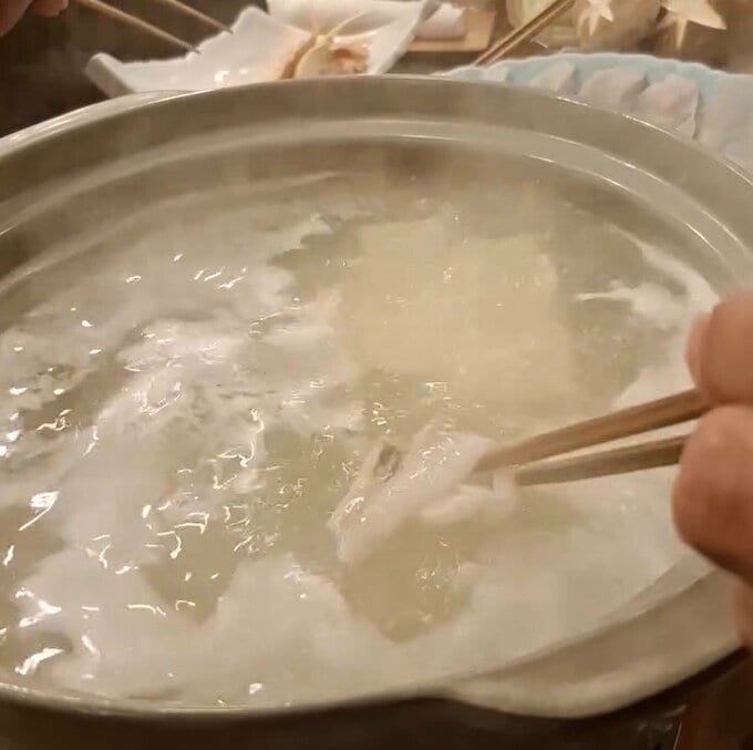 続けて「穴子の頭と骨からとった出汁に数秒くぐらせポン酢で食べます。」と、美味しそうな穴子の身をしゃぶしゃぶする動画を添えて、説明しました。