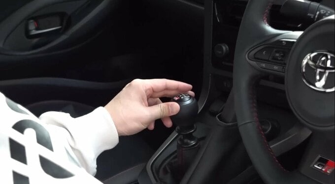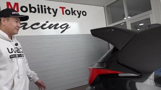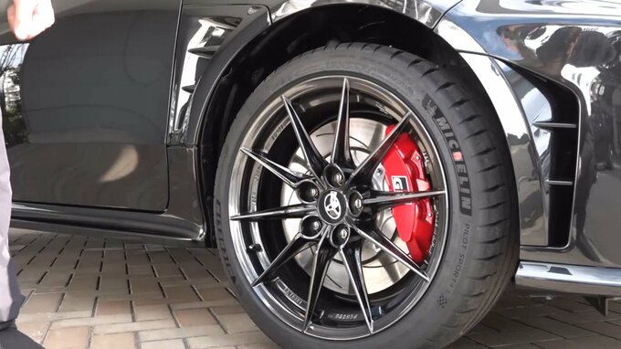 長田さんは車を目にするなり「うわ、かっこよ」と声を上げ、ホイールやGRロゴ入りのキャリパー、シフトノブなどのディテールに次々と感激。エンジン始動時にはその音と迫力に「めちゃくちゃかっこいいわ」と興奮した様子を見せました。