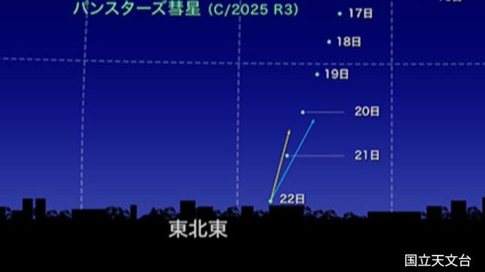 国立天文台によりますと、この時期の彗星は、4月19日に近日点を通過し、彗星活動が最も活発になる頃です。しかしながら、位置が非常に低い空になるため、観察は徐々に難しくなっていきます。