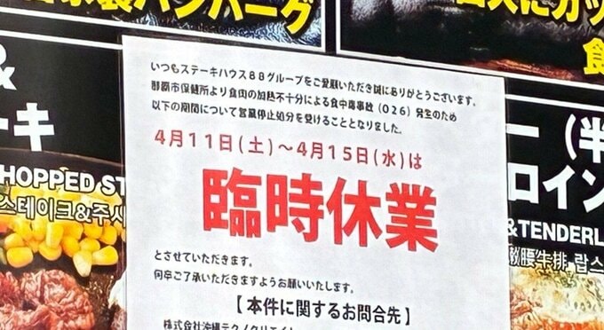 この5店舗では肉の加熱時間や中心温度の測定を行っておらず、焼き色で判断するなど不適切な取扱いが原因とみられています。