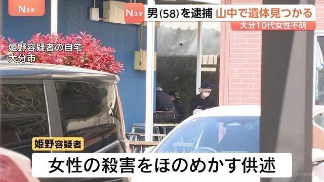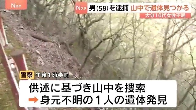 警察は先月4日、10代後半の女性が行方不明になったという家族からの届け出を受けて捜査した結果、姫野容疑者の関与が浮上し、きょう未明に逮捕。供述に基づき山中を捜索した結果、午後1時半前、身元不明の1人の遺体を発見しました。