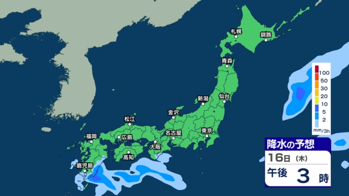 【 今後の雨 】あす13日(月)は九州などで雨の時間帯も 15日(水)~16日(木)ごろは西日本~東日本で傘の出番か【13日(月)~17日(金)の雨シミュレーション・12日午後9時30分更新】 5時間前