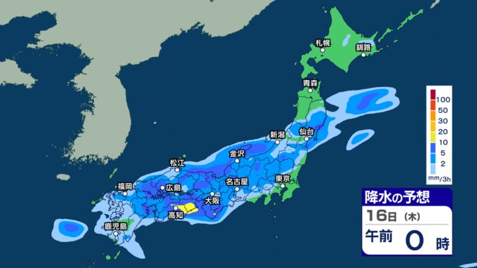 【 今後の雨 】あす13日(月)は九州などで雨の時間帯も 15日(水)~16日(木)ごろは西日本~東日本で傘の出番か【13日(月)~17日(金)の雨シミュレーション・12日午後9時30分更新】 新潟放送 2026年4月12日(日) 21:30 16日(木)の雨のシミュレーション