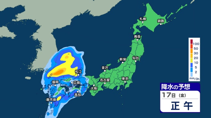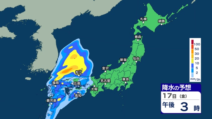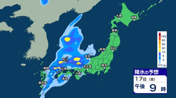 【 今後の雨 】あす13日(月)は九州などで雨の時間帯も 15日(水)~16日(木)ごろは西日本~東日本で傘の出番か【13日(月)~17日(金)の雨シミュレーション・12日午後9時30分更新】 新潟放送 2026年4月12日(日) 21:30 17日(金)の雨のシミュレーション