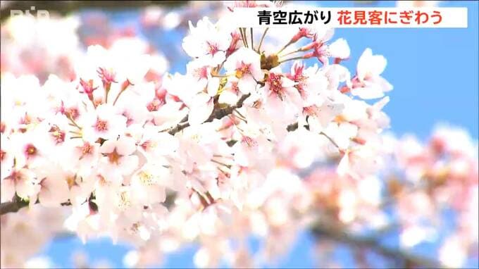 青空の下、満開を迎えた桜。長岡市の越路河川公園では約300本の桜が咲き誇り、家族連れなど多くの人が花見を楽しみました。