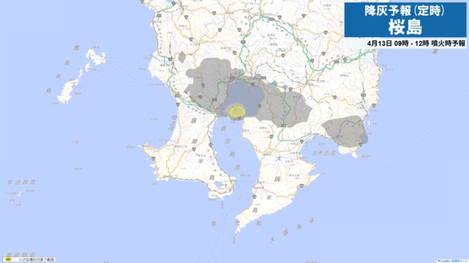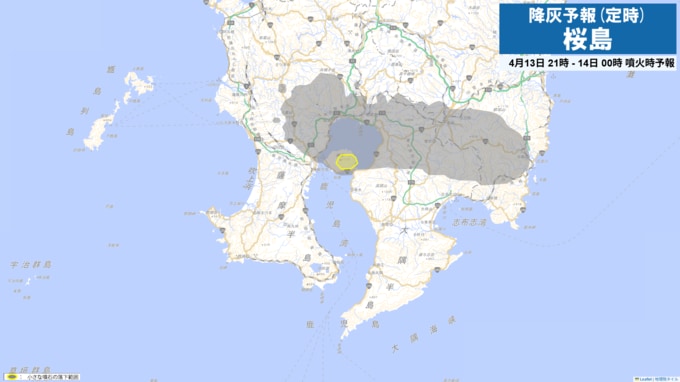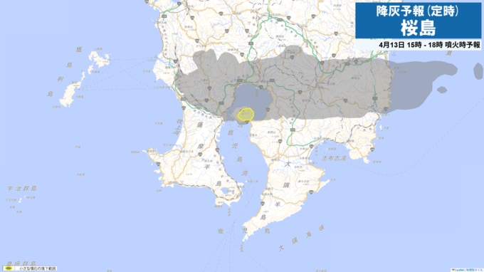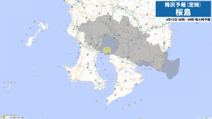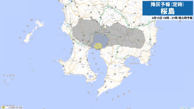 桜島の降灰予報・風向き(下に画像で掲載)鹿児島市街地側にも降灰か