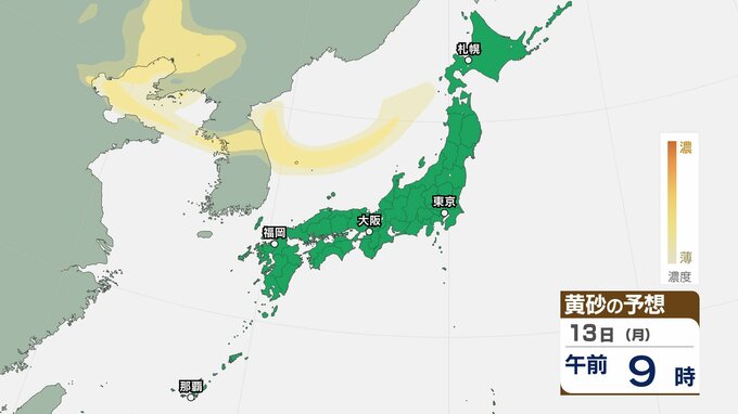 【黄砂情報】きょう13日(月)も「日本列島」に飛来か…北陸・東北の一部地域で影響の可能性 13日(月)~16日(木)黄砂シミュレーション【気象庁 13日現在】 RSK山陽放送 2026年4月13日(月) 09:42 国内 天気 13日(月) ▶13日(月)~16日(木)黄砂シミュレーション画像