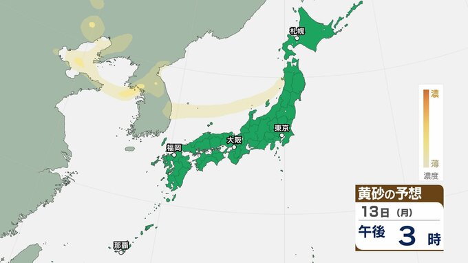 【黄砂情報】きょう13日(月)も「日本列島」に飛来か…北陸・東北の一部地域で影響の可能性 13日(月)~16日(木)黄砂シミュレーション【気象庁 13日現在】 RSK山陽放送 2026年4月13日(月) 09:42 国内 天気 13日(月)午後 ▶13日(月)~16日(木)黄砂シミュレーション画像 ▶13日(月)~16日(木)黄砂シミュレーション画像