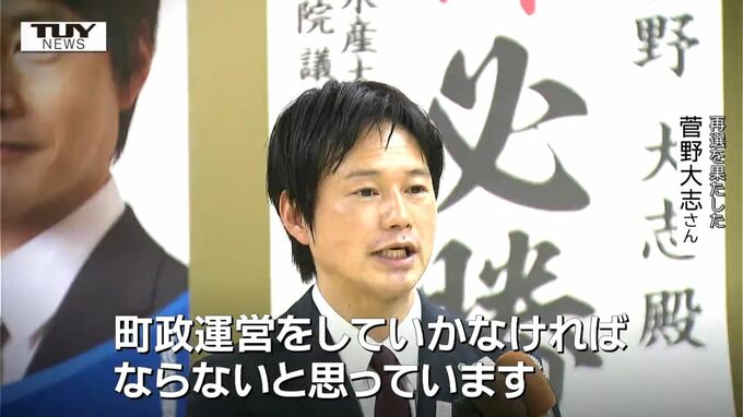 再選を果たした 菅野大志さん「1年間、私もしっかり対応してきたし、防止策もつくってきたので、改善することは改善したり、自らもしっかり反省しながら町政運営をしていかなければならないと思っています」