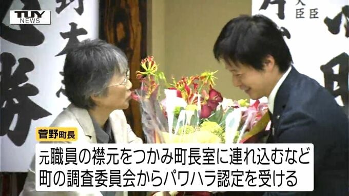 菅野町長は元職員の襟元をつかみ町長室に連れ込んだことや勤務時間外にサウナやウォーキングなどで職員に個別に面談したことについて今年2月、町の調査委員会からパワハラ認定を受けています。