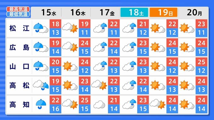 18日(土)午前9時の予報