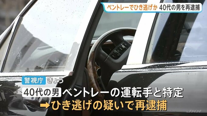 警視庁は防犯カメラの捜査などからこの40代の男をベントレーの運転手と特定し、きょう、ひき逃げの疑いで再逮捕しました。