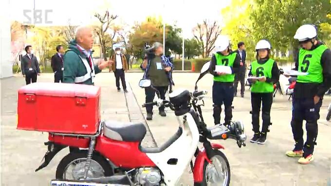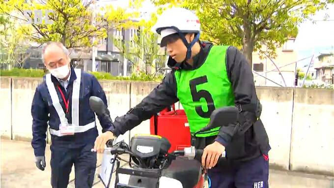 きょうは2つのグループに分かれ、配達用の「赤いバイク」の特性や操作方法などを配達業務のトレーナーから指導を受けました。