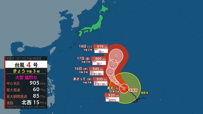 【台風情報】「台風第4号(シンラコウ)」の実況・予報