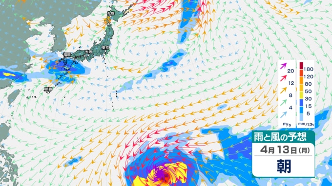 【台風4号情報 13日午後4時過ぎ更新】“台風の目”くっきり… 大型で猛烈な勢力にまで発達の“春の台風” ゆっくり北上中 最大瞬間風速85m/s・中心気圧905hPa 最新進路予想や日本への影響は? 雨・風シミュレーション 青森テレビ 2026年4月13日(月) 14:35 国内 【4月13日】雨・風の予想シミュレーション【10日先まであり】 【雨・風の予想シミュレーションをまとめて見る】 (4月13日、14日~15日、16日~17日、18~19日、20日~21日、22日~23日) 【この記事を最初から読む】