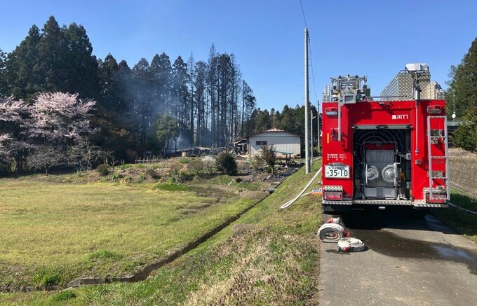 13日昼頃、宮城県大衡村で住宅の敷地内にある倉庫が焼ける火事があり消防が消火活動にあたっています。
