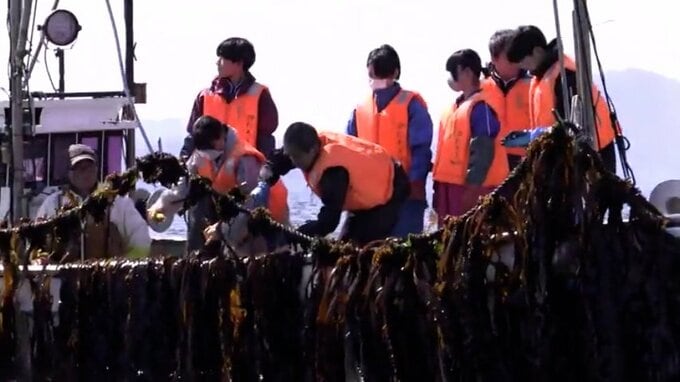 岩手県宮古市の中学生がワカメの刈り取り作業を体験し、地元の主要産業に理解を深めました。13日朝は田老第一中学校の新3年生18人が、3つの船に分かれて刈り取りを体験しました。引き上げたワカメは長さ3mほどで、…