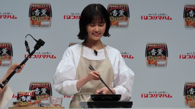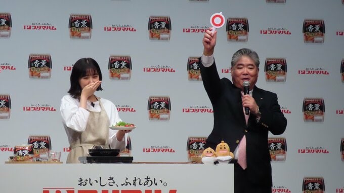 「香薫」を食べたいシチュエーションを聞かれると、原さんは〝ピクニックだったり、運動会。外でお弁当で食べたい。妹の運動会がそろそろあるので、一緒にグラウンドで食べたら楽しいひとときになるんじゃないかな〟と、具体的に回答。自身の運動会でも「香薫」の思い出があるそうで、〝お弁当箱いっぱいに詰められた「香薫」が印象に残っています。タコさんの形に切ってもらって、タッパー全部に敷き詰めて。家族は彩りとか気にしてくれたんですけど、全部「香薫」で良いって言って...。シェアハピして食べました〟と明かし、会場を驚かせていました。