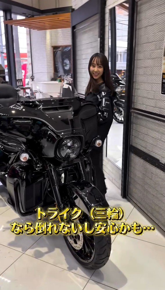 続けて「トライク(三輪)なら倒れないし安心かも… 『それ車の免許で乗れるよ、、? 大型二輪取った意味ねーよお?』ってお母さんに言われたw たしかにすぎる~ww」「ハーレーかっこよすぎて まだ決められない みんなは何がいいと思う?」と、綴っていました。