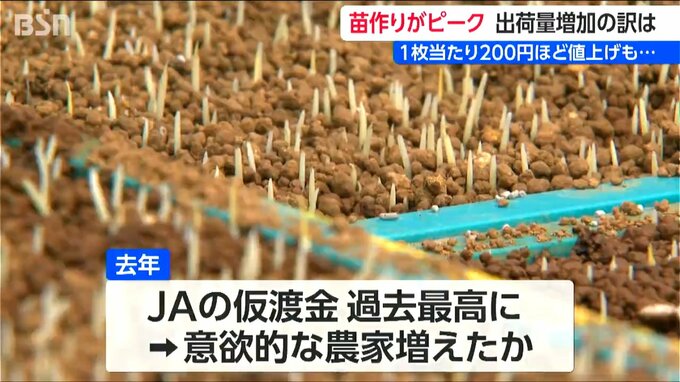 また、農薬などが値上がりしたことから、苗も1枚当たり200円ほど引き上げられました。