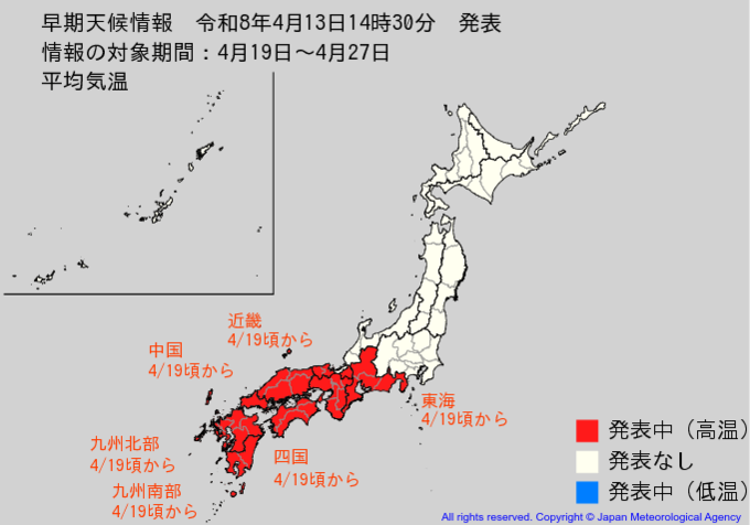 東海地方 4月19日頃から かなりの高温