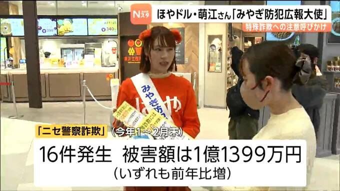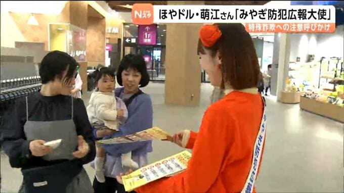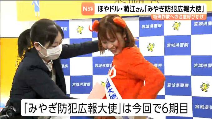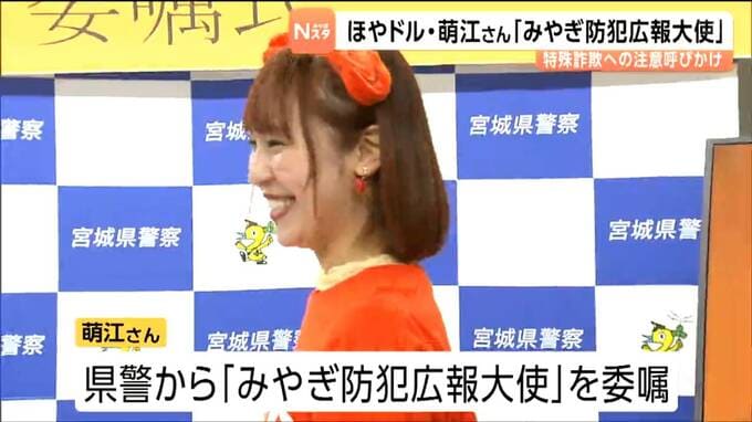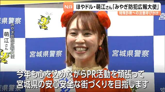宮城県警の「みやぎ防犯広報大使」にほやドルとして知られる萌江さんが任命され、さっそく特殊詐欺の被害防止を呼びかけました。