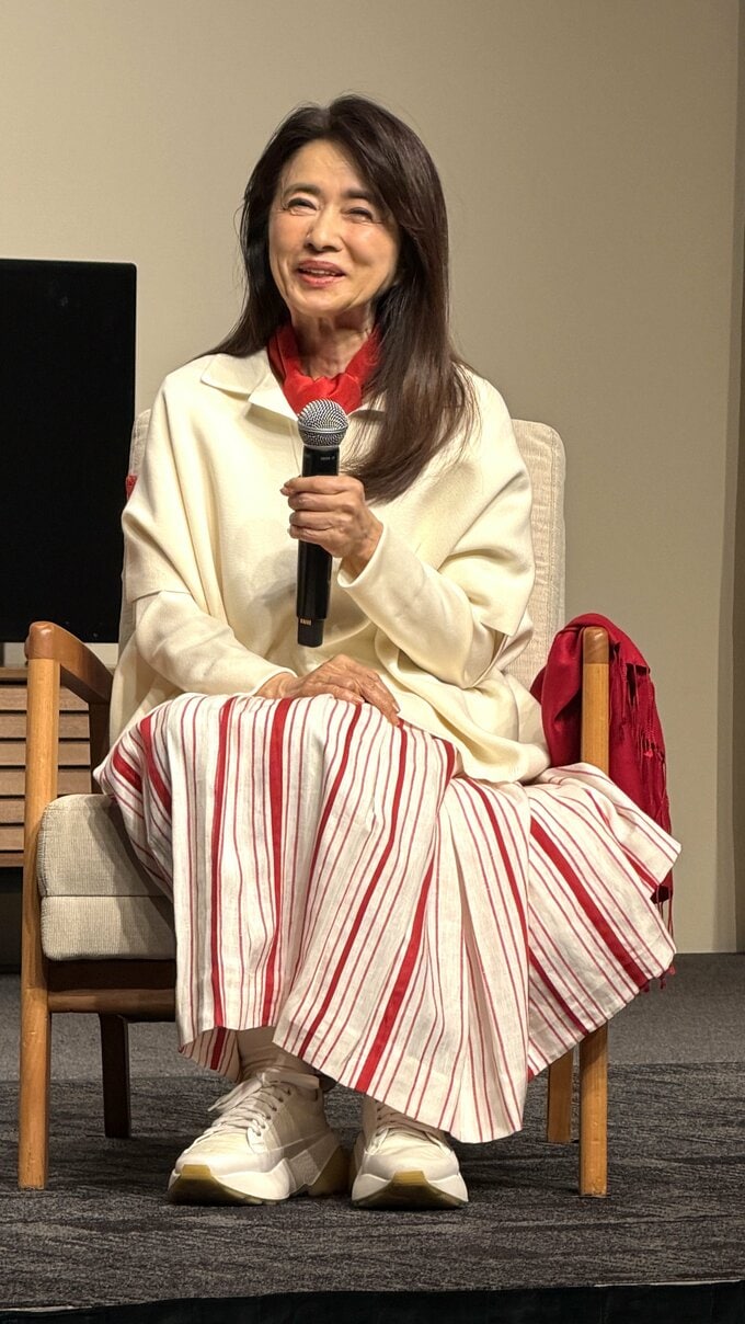 風吹さんの趣味は「登山」。67歳のときに自身の地元・富山県に位置する剣岳(標高2999メートル)を登頂したそうで、〝登山をやる年齢というのを皆さん意識しすぎてるんですが、試してみると、そうでもない〟〝17.8mくらい縦に壁を登らなきゃいけないんですよね。クライマーみたいな。2日かけて山を登るんですけど…〟とケロッとした表情で話すと、会場からは「すごい」とどよめきが起きる場面も。照れ笑いを浮かべながら、いつまでも変わらないパワフルさをアピールしていました。