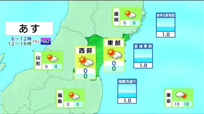 すっきりと晴れるでしょう。内陸を中心に冷え込むため、霜に対する農作物の管理に注意してください。